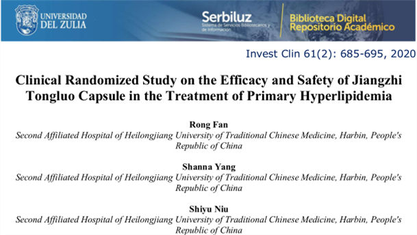 降脂通络软胶囊有效性及安全性研究成果在SCI期刊《INVESTIGACION CLINICA》上发表