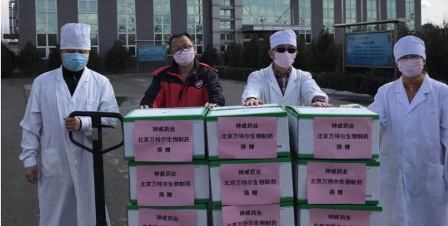2020-03-04神威药业全资子公司北京万特尔生物制药有限公司向河南、甘肃、黑龙江、山东、重庆、四川、上海、广西等地多家医院捐赠共计1698支万特普安—铜绿假单胞菌注射液,有效提升医护人员身体免疫力,预防病毒感染。